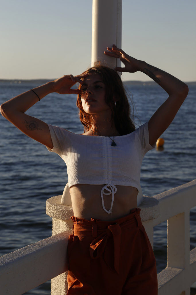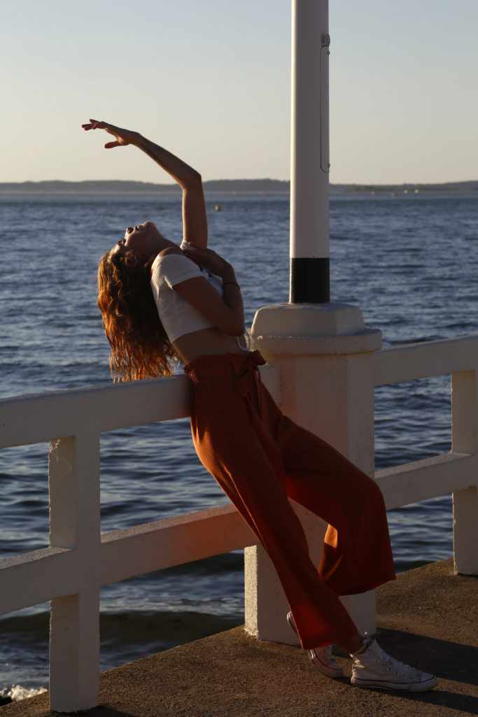 Le corps d’être mannequin, et l’esprit vagabond, voici les photos réalisées sur le bassin d’Arcachon, avec un magnifique couché de soleil.