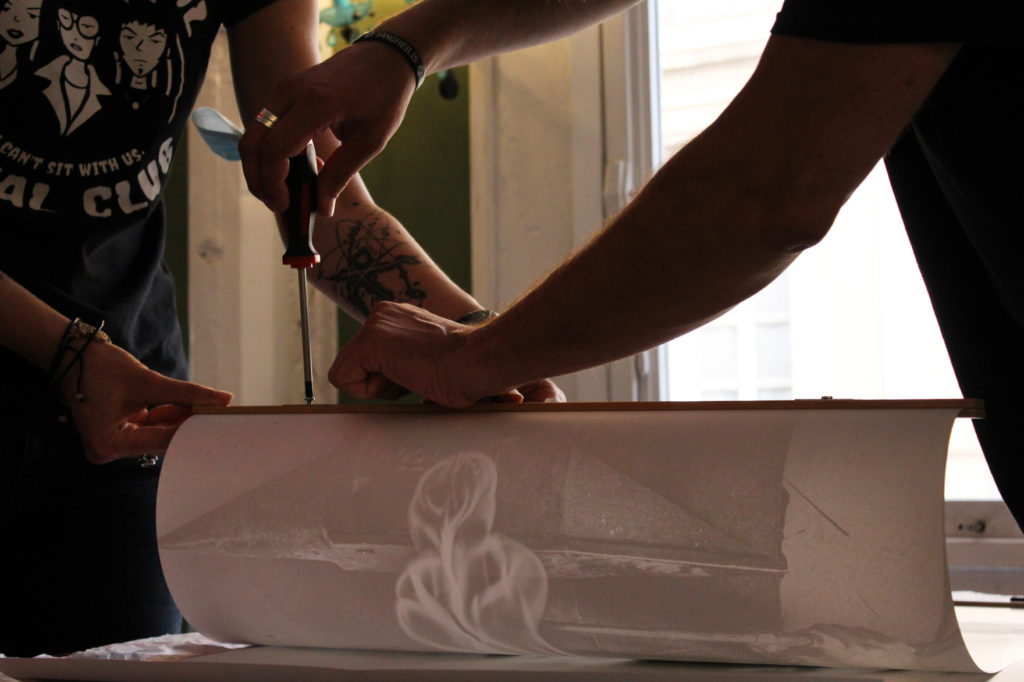 La logistique a été un défi : trouver un lieu d’exposition ; trouver un lieu pour le shooting ; trouver un imprimeur de haute qualité pouvant traiter la demande en si peu de temps… Le challenge était conséquent, mais peu à peu les solutions se sont révélées.